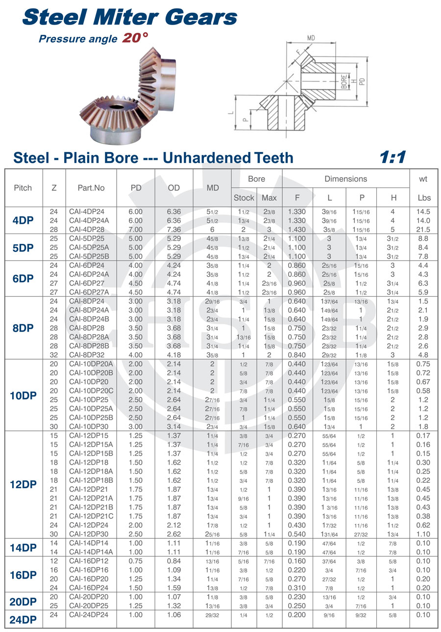 產品范圍: 美標:(20° 1:1) 歐標:(20° 1:1/1:2/1:3/1:4) 英制尺寸產品(適用于美標市場) 公制尺寸產品(適用于歐標市場) SB-A型錐齒輪 齒輪、圓柱正齒輪、尼龍齒輪、傳動齒輪、變位齒輪、漸開線齒輪、斜齒輪、螺旋齒輪、內齒輪、齒圈、傘齒輪、錐齒輪、